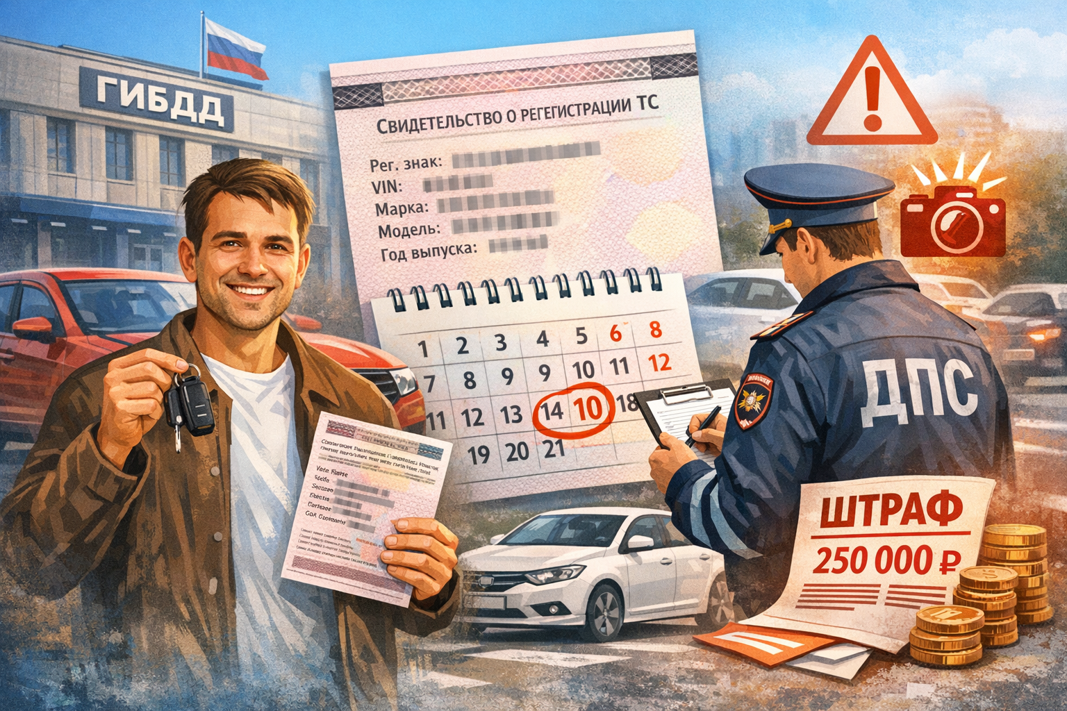 Если не зарегистрировать автомобиль в течение 10 дней, владельцу грозят штрафы: